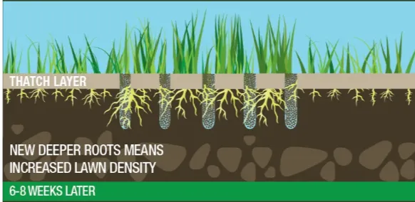 But the very best time to aerate is in the fall when the temperatures have cooled off, when the weed pressure is minimal, and when grass is actively growing.